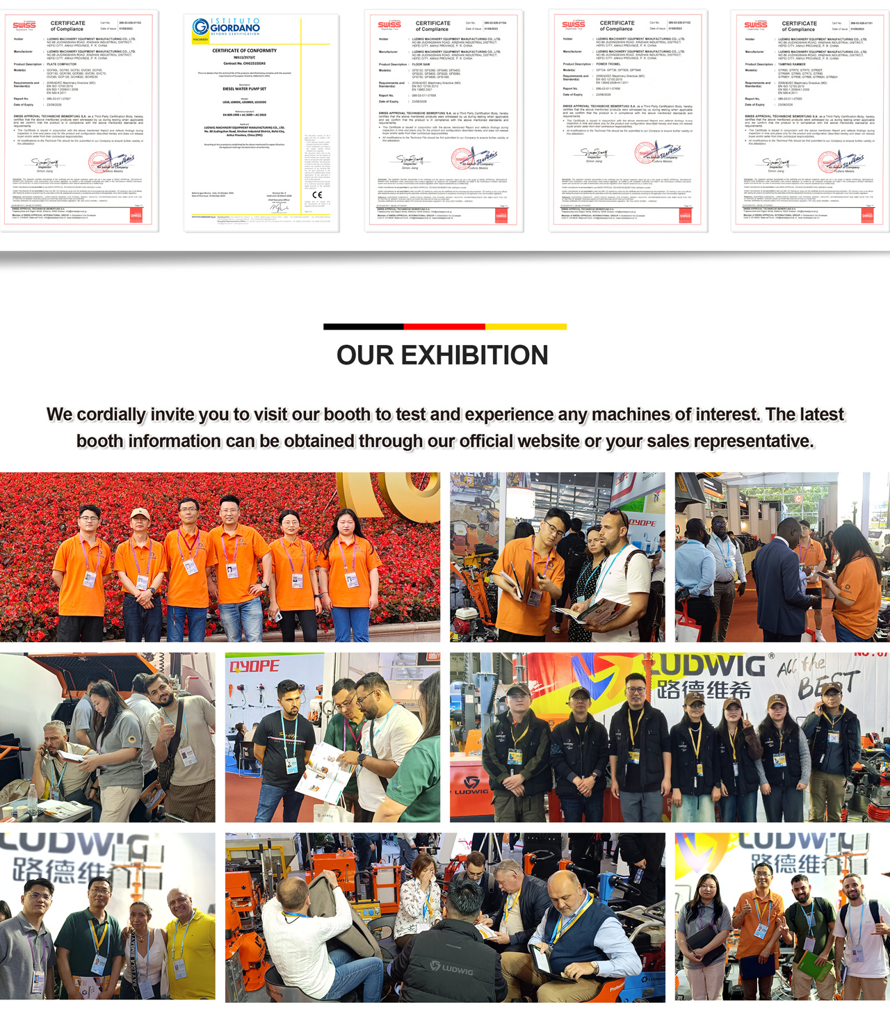 LUDWIG is a professional manufacturer of small general machinery products, such as concrete machinery, road compaction machinery, road maintenance machinery, mobile light tower, pressure washers, generators, engines and other products; At present, the company has Hefei production factory and Fuyang production factory, and has its own laser cutting machine, bending machine, pipe bending machine, CNC machine tool, welding equipment, spraying workshop and other key process manufacturing equipment. The company has decades of R & D experience design engineers and application engineers, can provide OEM and ODM services, the company absorbs and applies German customers decades of European and American market technical requirements, manufacturing high-end products, has served 80 countries and regions around the world.